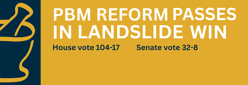 PBM Reform overwhelmingly passed the Kansas legislature on March 24 (104-17 in the House and 32-8 in the Senate). Your hard work and tenacity made this happen. As we await Gov. Kelly's signature, please remember to thank the lawmakers who supported us.